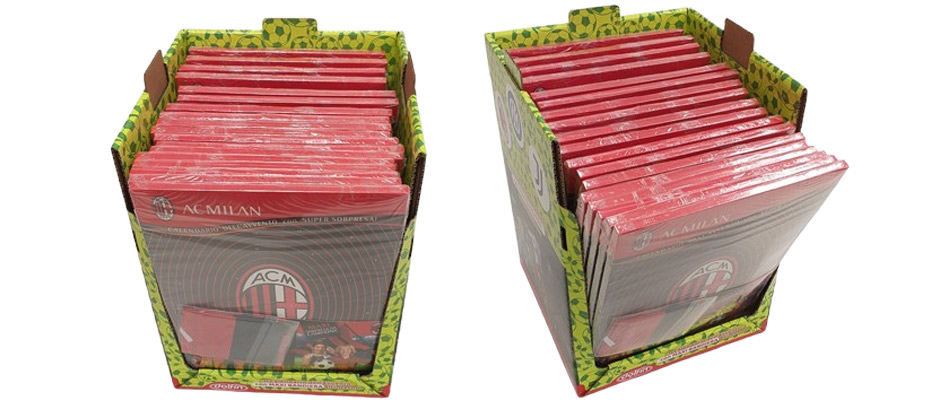 Dolfin, an Italian confectionery company producing seasonal chocolate products, encountered a major challenge with the display of their football advent calendar, which included chocolates and a team flag. They asked us to create a new display packaging solution that would keep the flag visible while ensuring the trays remained stable, even when stacked or accidentally knocked. Their previous solution, though offering good visibility, had serious drawbacks: the calendars frequently fell out, and the trays were prone to toppling over. This instability, particularly during handling or accidental impacts, caused significant issues in retail settings.