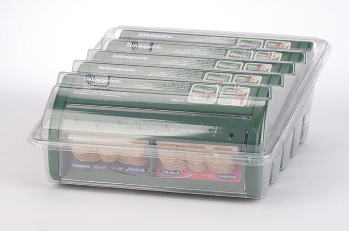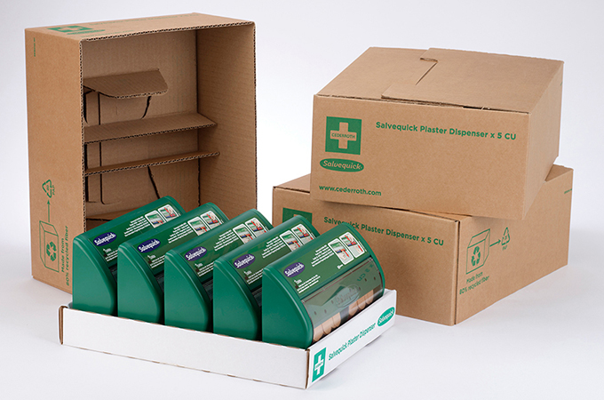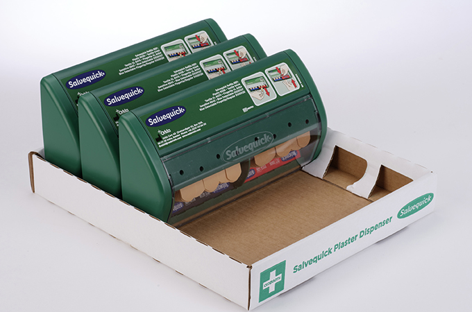 To meet these requirements, we designed a 100% paper-based solution which consisted of a corrugated tray and hood. This clever solution ensured the plaster dispensers were protected during transportation, and once in a retail environment, the hood can be removed to allow the products to be displayed effectively on the shelf in a branded corrugated tray.